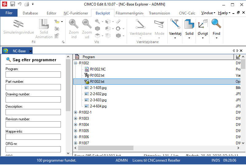 CIMCO NC-Base 8 er et CNC-programstyringsværktøj, der sætter dig i stand til at ordne og håndtere dine CNC-programmer samt de tilhørende produktionsdokumenter. |